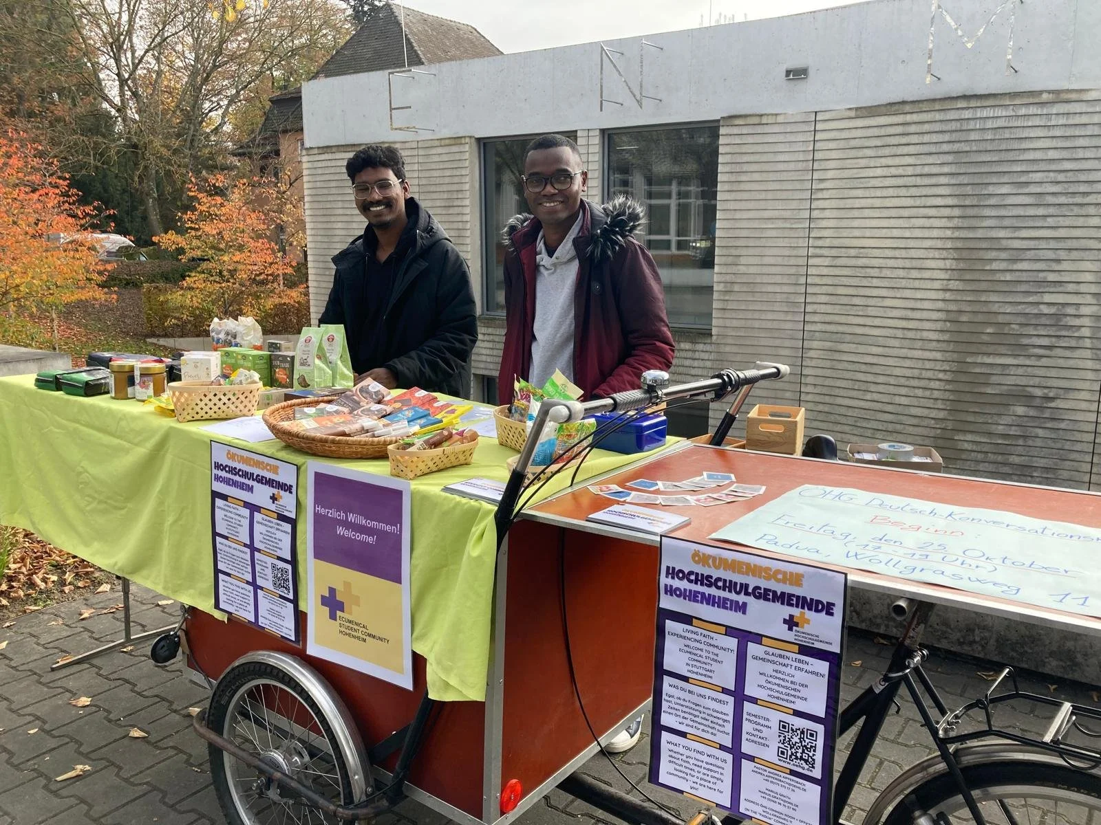 Welcome table at ÖHG Hohenheim is a biweekly community dinner, providing free food and a welcoming space for 20-30 students each time.
